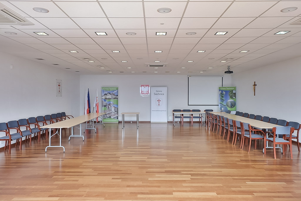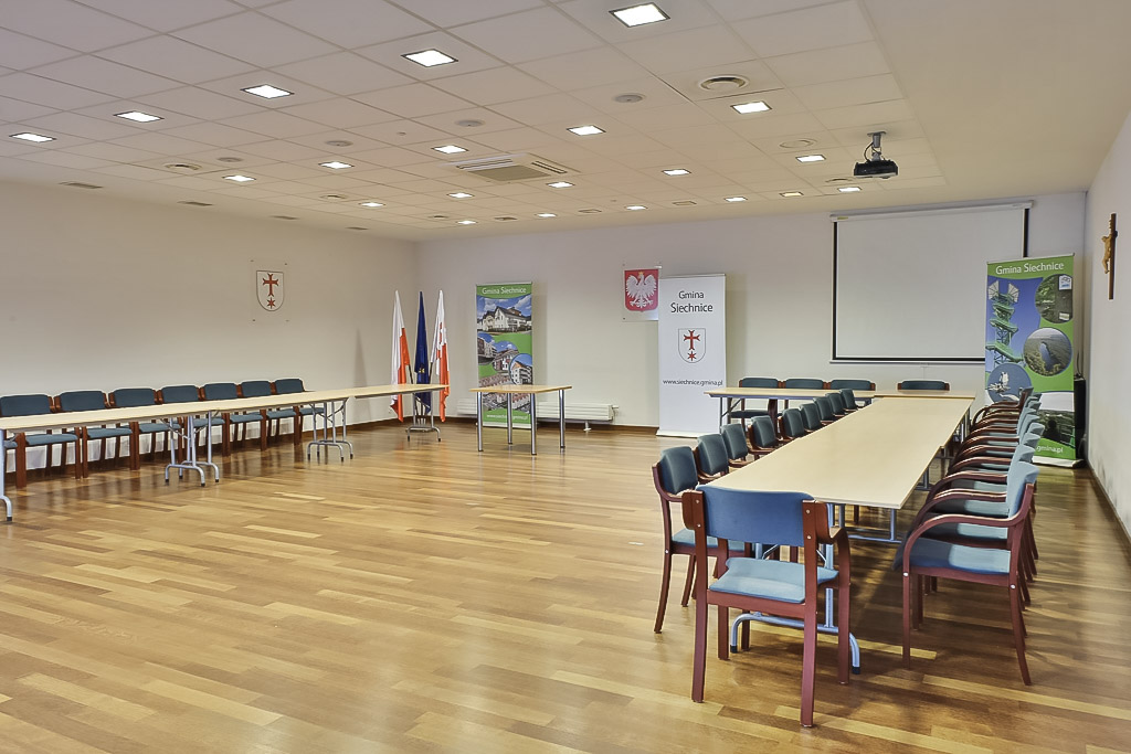 Proponujemy Państwu wynajem sali konferencyjnej w Ratuszu w Siechnicach.